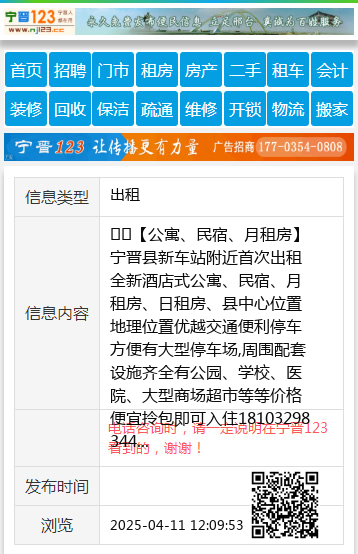 ♥️【公寓、民宿、月租房】宁晋县新车站附近首次出租全新酒店式公寓、民宿、月租房、日租房、县中心位置地理位置优越交通便利停车方便有大型停车场,周围配套设施齐全有公园、学校、医院、大型商场超市等等价格便宜拎包即可入住18103298344 【电话咨询时,请一定说明在宁晋123看到的,谢谢!】 |