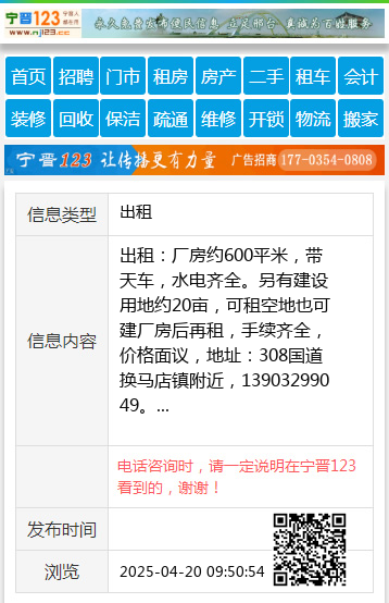 出租:厂房约600平米,带天车,水电齐全。另有建设用地约20亩,可租空地也可建厂房后再租,手续齐全,价格面议,地址:308国道换马店镇附近,13903299049。 【电话咨询时,请一定说明在宁晋123看到的,谢谢!】 |