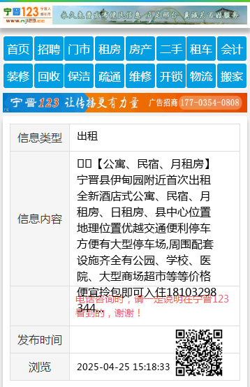 ♥️【公寓、民宿、月租房】宁晋县伊甸园附近首次出租全新酒店式公寓、民宿、月租房、日租房、县中心位置地理位置优越交通便利停车方便有大型停车场,周围配套设施齐全有公园、学校、医院、大型商场超市等等价格便宜拎包即可入住18103298344 【电话咨询时,请一定说明在宁晋123看到的,谢谢!】 |