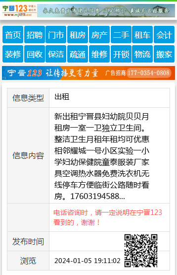 新出租宁晋县妇幼院贝贝月租房一室一卫独立卫生间。整洁卫生月租年租均可优惠相邻耀城一号小区实验一小学妇幼保健院童泰服装厂家具空调热水器免费洗衣机无线停车方便临街公路随时看房。17603194588 【电话咨询时,请一定说明在宁晋123看到的,谢谢!】 |