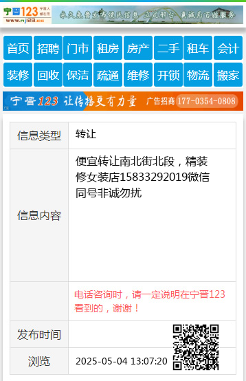 便宜转让南北街北段,精装修女装店15833292019微信同号非诚勿扰