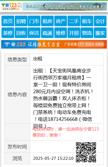 | 防骗提醒: | 宁晋123(www.nj123.cc)提醒您:手工活、网络兼职、刷单,都是骗子!凡以各种名义收取费用的都是骗子!找工作是往兜里挣钱,让你往外掏钱的都是骗子!异地招聘请提高警惕,谨防诈骗! |