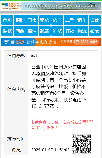 营业中民乐园附近外卖店因无暇顾及整体转让,接手即可盈利,有三个品类小份菜,麻辣香锅,拌饭,价格不高房租还有8个月,设备齐全,同行可来,联系电话15131317775 【电话咨询时,请一定说明在宁晋123看到的,谢谢!】 |