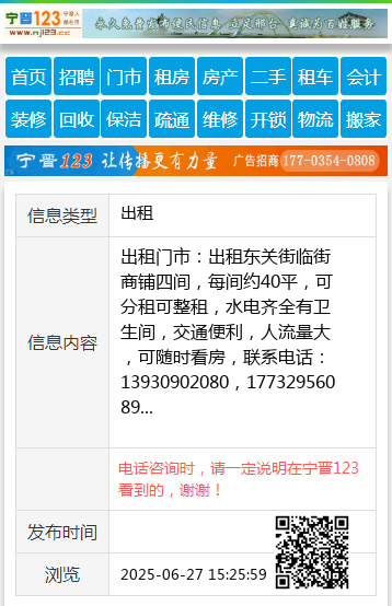 出租门市:出租东关街临街商铺四间,每间约40平,可分租可整租,水电齐全有卫生间,交通便利,人流量大,可随时看房,联系电话:13930902080,17732956089 【电话咨询时,请一定说明在宁晋123看到的,谢谢!】 |