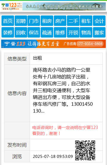 南环路去小马的路约一公里处有十几亩地的院子出租,有彩钢瓦房三间,自己的水井三相电交通便利,大型车辆进出方便,可放大型设备停车场汽修厂等。13001450130 【电话咨询时,请一定说明在宁晋123看到的,谢谢!】 |