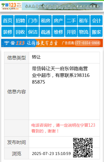 带货转让天一府东邻路南营业中超市,有意联系19831685875