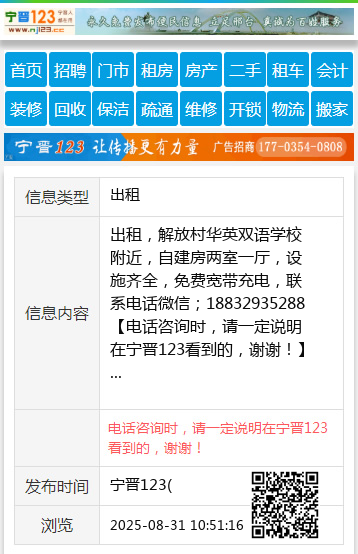 免责声明:本栏目信息由网友自行发布,宁晋123不承担任何责任!提高警惕,谨防诈骗!做推广、做信息置顶!请加宁晋123客服微信:ningjin009