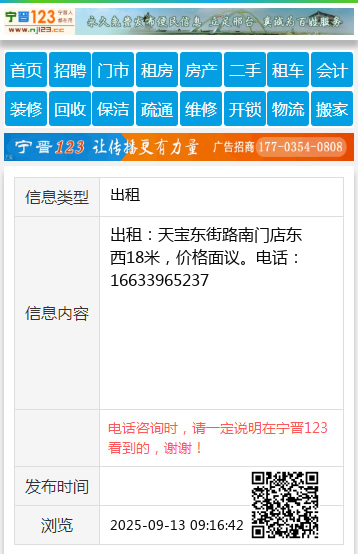 出租:天宝东街路南门店东西18米,价格面议。电话:16633965237
