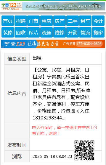【公寓、民宿、月租房、日租房】宁晋县民乐园首次出租新建全新酒店式公寓、民宿、月租房、日租房,所有家电家具应有尽有,配套设施齐全,交通便利,停车方便,价格便宜,拎包即可入住18103298344 【电话咨询时,请一定说明在宁晋123看到的,谢谢!】 |