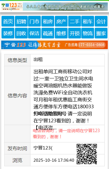 出租单间工商街移动公司对过:一室一卫独立卫生间水电暖空调油烟机热水器能做饭洗澡免费WiFi全自动洗衣机可月租年租优惠临工商街交通方便停车方便电话18003393070微信同号