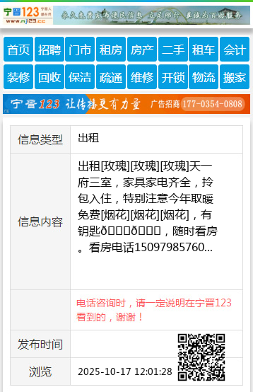 出租[玫瑰][玫瑰][玫瑰]天一府三室,家具家电齐全,拎包入住,特别注意今年取暖免费[烟花][烟花][烟花],有钥匙🔑🔑,随时看房。看房电话15097985760 【电话咨询时,请一定说明在宁晋123看到的,谢谢!】 |