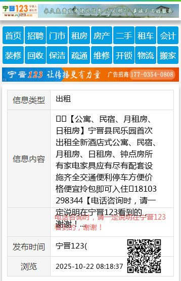 ♐️【公寓、民宿、月租房、日租房】宁晋县民乐园首次出租全新酒店式公寓、民宿、月租房、日租房、钟点房所有家电家具应有尽有配套设施齐全交通便利停车方便价格便宜拎包即可入住18103298344 【电话咨询时,请一定说明在宁晋123看到的,谢谢!】 |