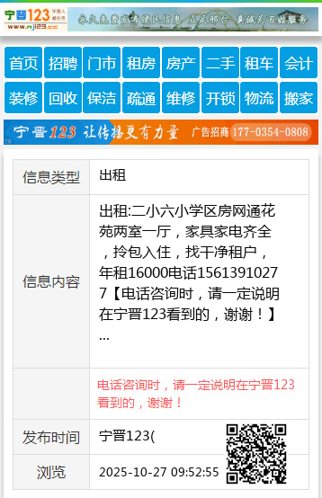 出租:二小六小学区房网通花苑两室一厅,家具家电齐全,拎包入住,找干净租户,年租16000电话15613910277 【电话咨询时,请一定说明在宁晋123看到的,谢谢!】 |