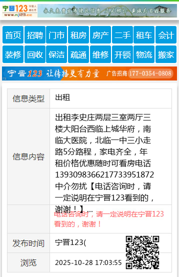 出租李史庄两层三室两厅三楼大阳台西临上城华府,南临大医院,北临一中三小走路5分路程,家电齐全,年租价格优惠随时可看房电话1393098366217733951872中介勿扰 【电话咨询时,请一定说明在宁晋123看到的,谢谢!】 |