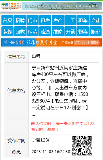 宁晋新车站附近闫家庄新建库房400平左右可以做厂房,办公室,仓储物流,直播中心等。门口大出进车方便内设三相电。联系电话:15903298074 【电话咨询时,请一定说明在宁晋123看到的,谢谢!】 |