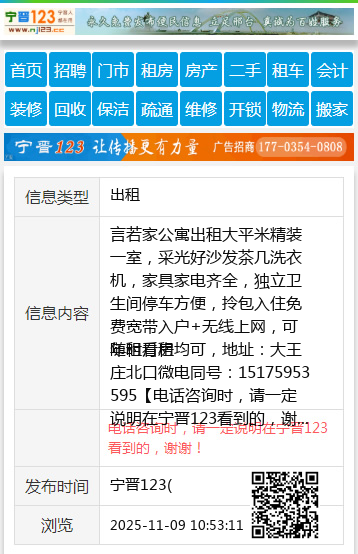 年租月租均可,地址:大王庄北口微电同号:15175953595 【电话咨询时,请一定说明在宁晋123看到的,谢谢!】 |