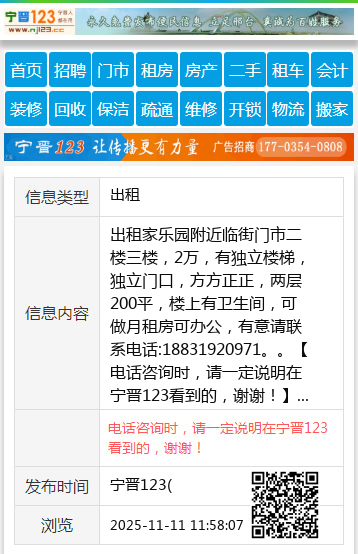 出租家乐园附近临街门市二楼三楼,2万,有独立楼梯,独立门口,方方正正,两层200平,楼上有卫生间,可做月租房可办公,有意请联系电话:18831920971。。 【电话咨询时,请一定说明在宁晋123看到的,谢谢!】 |
