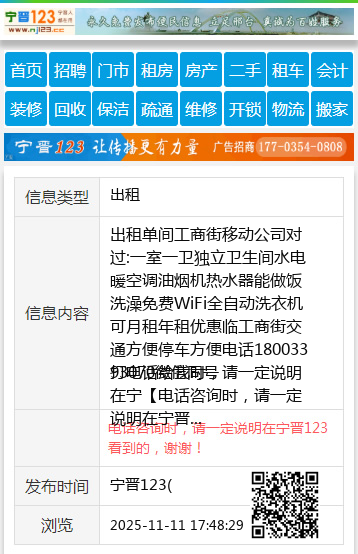 出租单间工商街移动公司对过:一室一卫独立卫生间水电暖空调油烟机热水器能做饭洗澡免费WiFi全自动洗衣机可月租年租优惠临工商街交通方便停车方便电话18003393070微信同号