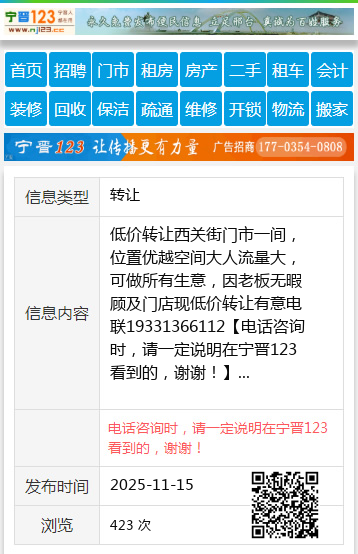 低价转让西关街门市一间,位置优越空间大人流量大,可做所有生意,因老板无暇顾及门店现低价转让有意电联19331366112