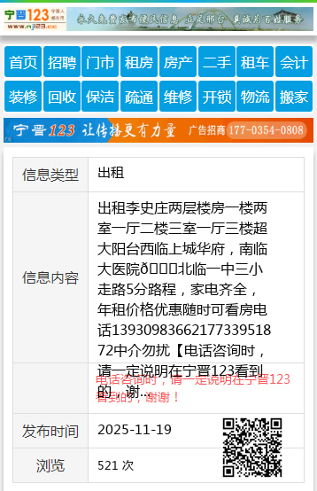 出租李史庄两层楼房一楼两室一厅二楼三室一厅三楼超大阳台西临上城华府,南临大医院😊北临一中三小走路5分路程,家电齐全,年租价格优惠随时可看房电话1393098366217733951872中介勿扰 【电话咨询时,请一定说明在宁晋123看到的,谢谢!】 |