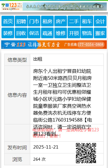 房东个人出租宁晋县妇幼院附近南50米路西贝贝月租房一室一卫独立卫生间整洁卫生月租年租均可优惠相邻耀城小区状元路小学妇幼保健院童泰服装厂家具空调热水器免费洗衣机无线停车方便临街公路17603194588 【电话咨询时,请一定说明在宁晋123看到的,谢谢!】 |