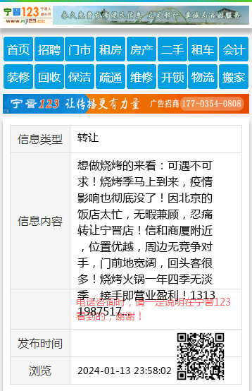 想做烧烤的来看:可遇不可求!烧烤季马上到来,疫情影响也彻底没了!因北京的饭店太忙,无暇兼顾,忍痛转让宁晋店!信和商厦附近,位置优越,周边无竞争对手,门前地宽阔,回头客很多!烧烤火锅一年四季无淡季,接手即营业盈利!13131987517 【电话咨询时,请一定说明在宁晋123看到的,谢谢!】 |