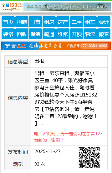 可以预约今天下午5点半看房 【电话咨询时,请一定说明在宁晋123看到的,谢谢!】 |