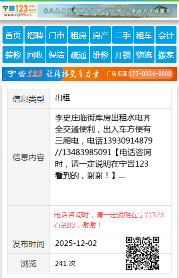 【电话咨询时,请一定说明在宁晋123看到的,谢谢!】
