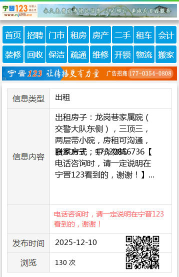出租房子:龙岗巷家属院(交警大队东侧),三顶三,两层带小院,房租可沟通,自家房子,中介勿扰 联系方式:17320866736