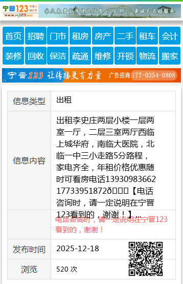 出租李史庄两层小楼一层两室一厅,二层三室两厅西临上城华府,南临大医院,北临一中三小走路5分路程,家电齐全,年租价格优惠随时可看房电话1393098366217733951872🍋 【电话咨询时,请一定说明在宁晋123看到的,谢谢!】 |