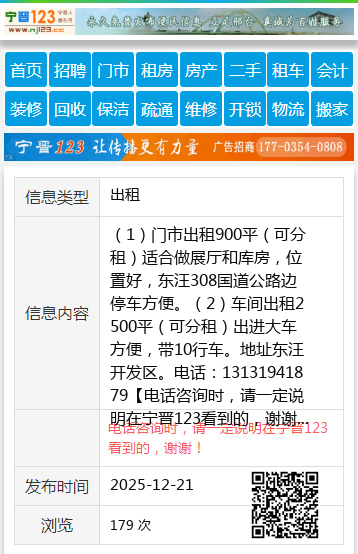 (1)门市出租900平(可分租)适合做展厅和库房,位置好,东汪308国道公路边停车方便。(2)车间出租2500平(可分租)出进大车方便,带10行车。地址东汪开发区。电话:13131941879 【电话咨询时,请一定说明在宁晋123看到的,谢谢!】 |