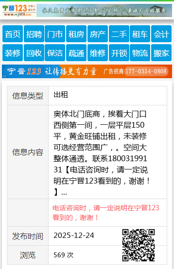 奥体北门底商,挨着大门口西侧第一间,一层平层150平,黄金旺铺出租,未装修可选经营范围广,。空间大整体通透。联系18003199131 【电话咨询时,请一定说明在宁晋123看到的,谢谢!】 |