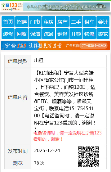 【旺铺出租】宁晋大型高端小区怡家公馆门市一间出租,上下两层,面积120㎡,适合餐饮、美容美发社区诊所🏥、烟酒等等,紧邻天宝街,联系电话15175454100 【电话咨询时,请一定说明在宁晋123看到的,谢谢!】 |