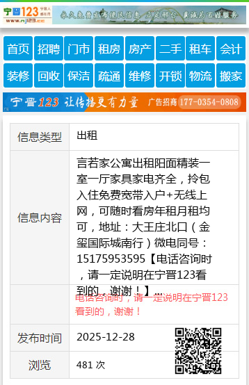 年租月租均可,地址:大王庄北口(金玺国际城南行)微电同号:15175953595 【电话咨询时,请一定说明在宁晋123看到的,谢谢!】 |