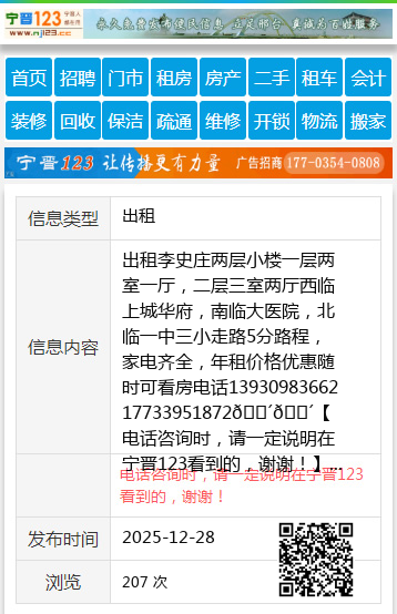 出租李史庄两层小楼一层两室一厅,二层三室两厅西临上城华府,南临大医院,北临一中三小走路5分路程,家电齐全,年租价格优惠随时可看房电话1393098366217733951872🐴🐴 【电话咨询时,请一定说明在宁晋123看到的,谢谢!】 |