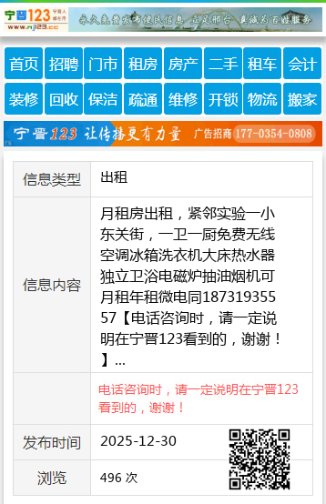 月租房出租,紧邻实验一小东关街,一卫一厨免费无线空调冰箱洗衣机大床热水器独立卫浴电磁炉抽油烟机可月租年租微电同18731935557 【电话咨询时,请一定说明在宁晋123看到的,谢谢!】 |
