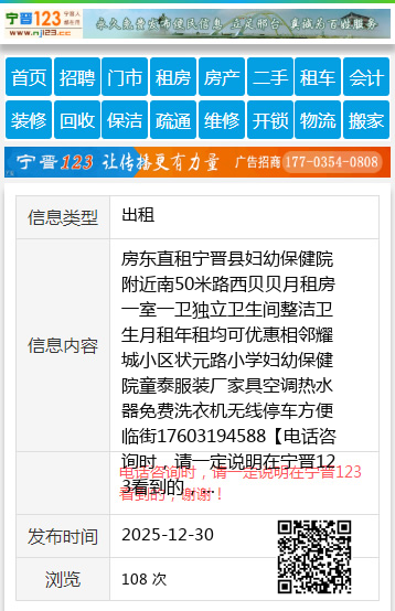 房东直租宁晋县妇幼保健院附近南50米路西贝贝月租房一室一卫独立卫生间整洁卫生月租年租均可优惠相邻耀城小区状元路小学妇幼保健院童泰服装厂家具空调热水器免费洗衣机无线停车方便临街17603194588 【电话咨询时,请一定说明在宁晋123看到的,谢谢!】 |