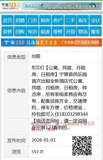 👀【公寓、民宿、月租房、日租房】宁晋县民乐园首次出租全新酒店式公寓、民宿、月租房、日租房、钟点房,所有家电家具应有尽有,配套设施齐全,交通便利,停车方便,价格便宜,拎包即可入住18103298344 【电话咨询时,请一定说明在宁晋123看到的,谢谢!】 |