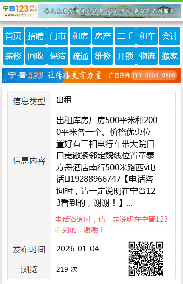 出租库房厂房500平米和2000平米各一个。价格优惠位置好有三相电行车带大院门口宽敞紧邻定魏线位置童泰方舟酒店南行500米路西v电话19288966747 【电话咨询时,请一定说明在宁晋123看到的,谢谢!】 |