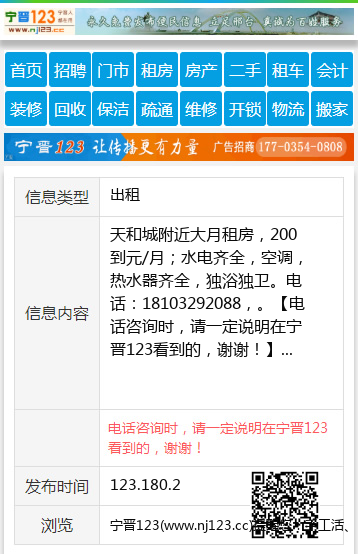 天和城附近大月租房,200到元/月;水电齐全,空调,热水器齐全,独浴独卫。电话:18103292088,。 【电话咨询时,请一定说明在宁晋123看到的,谢谢!】 |
