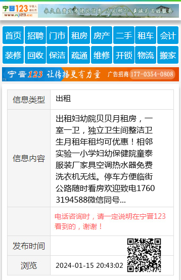 出租妇幼院贝贝月租房,一室一卫,独立卫生间整洁卫生月租年租均可优惠!相邻实验一小学妇幼保健院童泰服装厂家具空调热水器免费洗衣机无线。停车方便临街公路随时看房欢迎致电17603194588微信同号 【电话咨询时,请一定说明在宁晋123看到的,谢谢!】 |