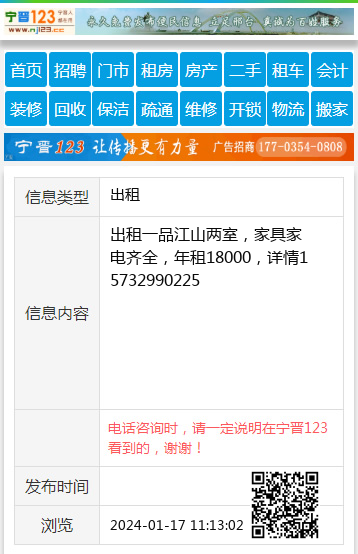 :出租一品江山两室,年租一万五,看房联系18730941167