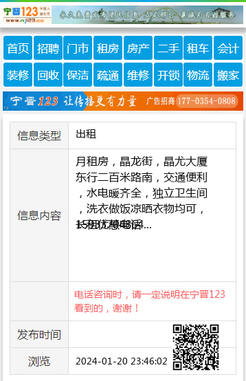月租房,晶龙街,晶尤大厦东行二百米路南,交通便利,水电暖齐全,独立卫生间,洗衣做饭凉晒衣物均可,长租优慧电话