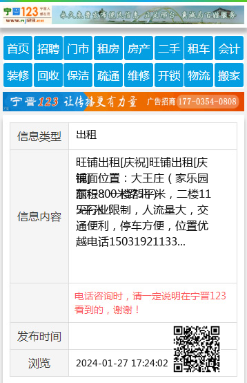 无行业限制,人流量大,交通便利,停车方便,位置优越电话15031921133 【电话咨询时,请一定说明在宁晋123看到的,谢谢!】 |