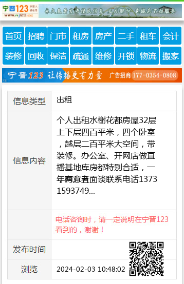 个人出租水榭花都房屋32层上下层四百平米,四个卧室,越层二百平米大空间,带装修。办公室、开网店做直播基地库房都特别合适,一年两万五