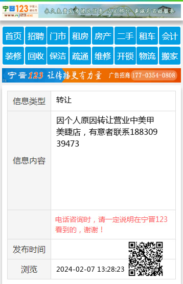 因个人原因转让营业中美甲美睫店,有意者联系18830939473