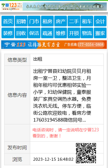 出租宁晋县妇幼院贝贝月租房一室一卫,整洁卫生,月租年租均可优惠相邻实验一小学,妇幼保健院,童泰服装厂家具空调热水器。免费洗衣机无线。停车方便,临街公路欢迎致电,看房方便17603194588微信同号 【电话咨询时,请一定说明在宁晋123看到的,谢谢!】 |