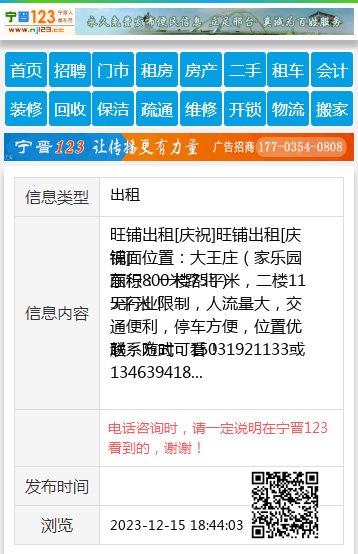 联系方式:15031921133或13463941860(微信同号) 【电话咨询时,请一定说明在宁晋123看到的,谢谢!】 |
