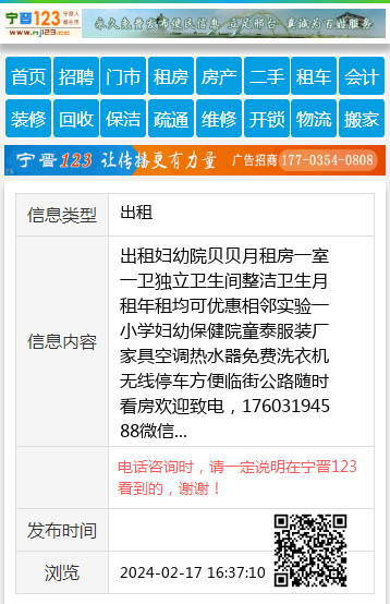 出租妇幼院贝贝月租房一室一卫独立卫生间整洁卫生月租年租均可优惠相邻实验一小学妇幼保健院童泰服装厂家具空调热水器免费洗衣机无线停车方便临街公路随时看房欢迎致电,17603194588微信 【电话咨询时,请一定说明在宁晋123看到的,谢谢!】 |