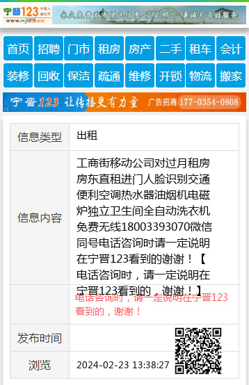 工商街移动公司对过月租房房东直租进门人脸识别交通便利空调热水器油烟机电磁炉独立卫生间全自动洗衣机免费无线18003393070微信同号电话咨询时请一定说明在宁晋123看到的谢谢!【电话咨询时,请一定说明在宁晋123看到的,谢谢!】
